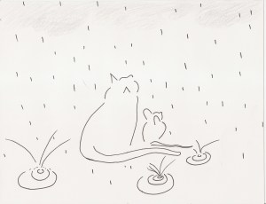 You make me wish for rain even more than usual. I have a wonderful place to watch and listen to the rain … a screened porch out in the woods. And I love the illustration.Amazing how a few simple lines convey so much.