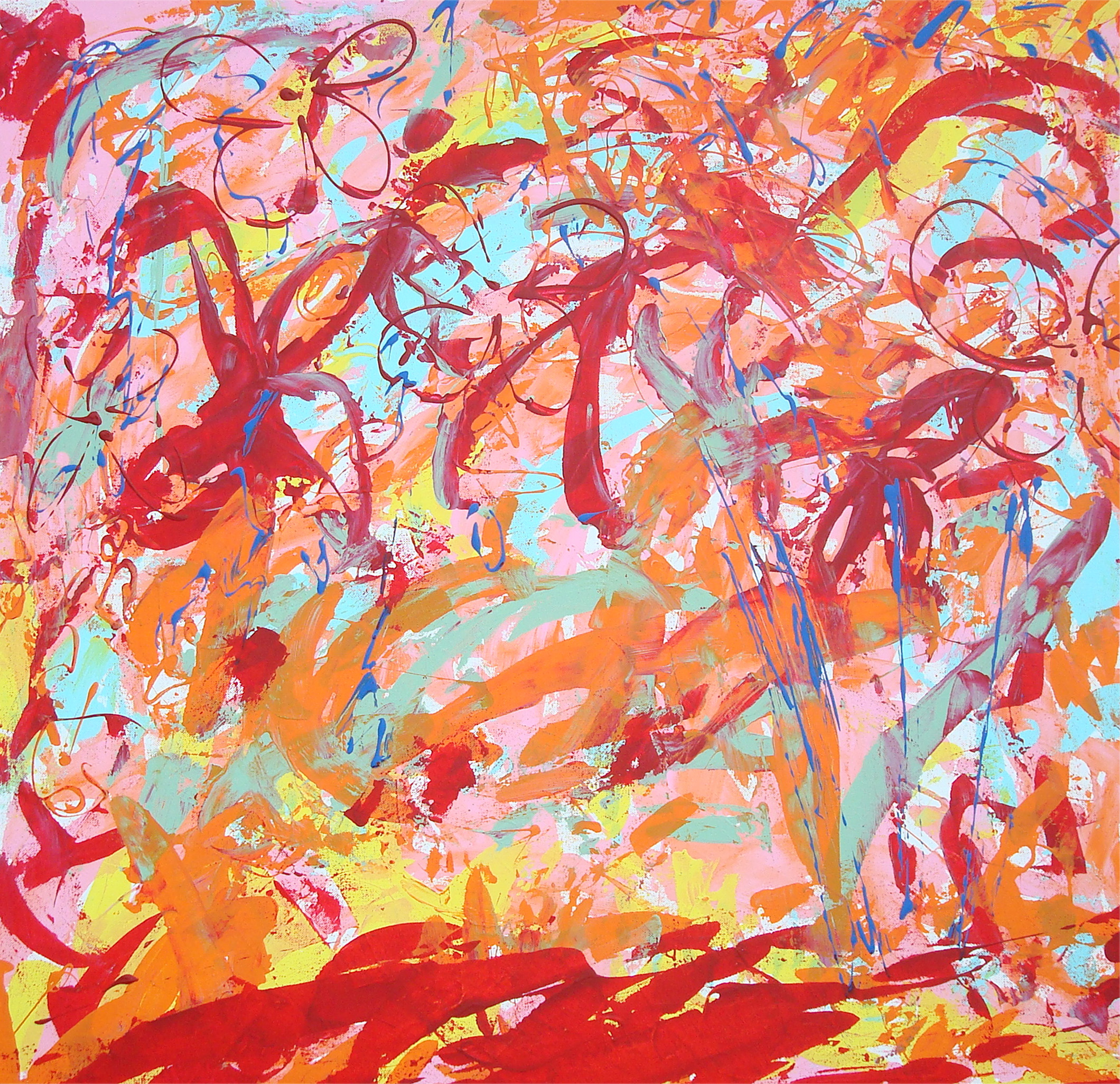 I’m working on a new tree painting and here is what’s underneath it all, the under-painting – done with jazz!
