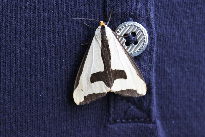 Haploa clymene (Clymene Moth) And the description is “a moth that carries a cross on its back.”