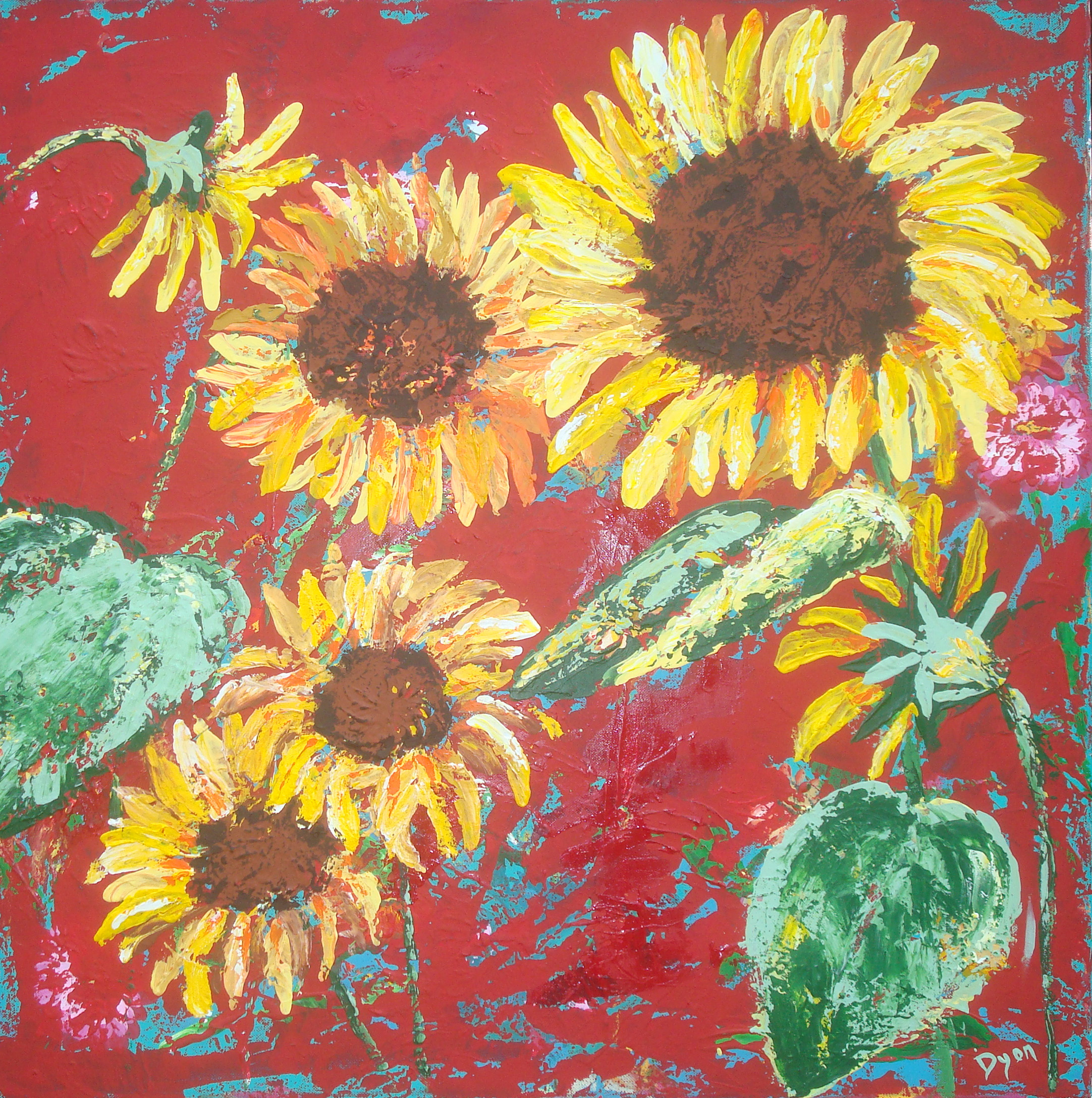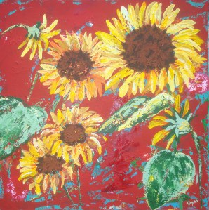 It’s hovering around 100 degrees here in North Carolina. But not hot enough to keep me from going to my brother’s garden and painting sunflowers.