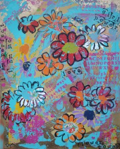 Art Prescription: Finally a day to just play with paint! My studio is clean and ready for a show, which gives me hours to explore mixed media. I’ve been interested in graffiti-like effects lately. Playing with acrylics and spray paint. Tapped into my 16 year old self today with this mixed-media work. What do you remember from being 16?