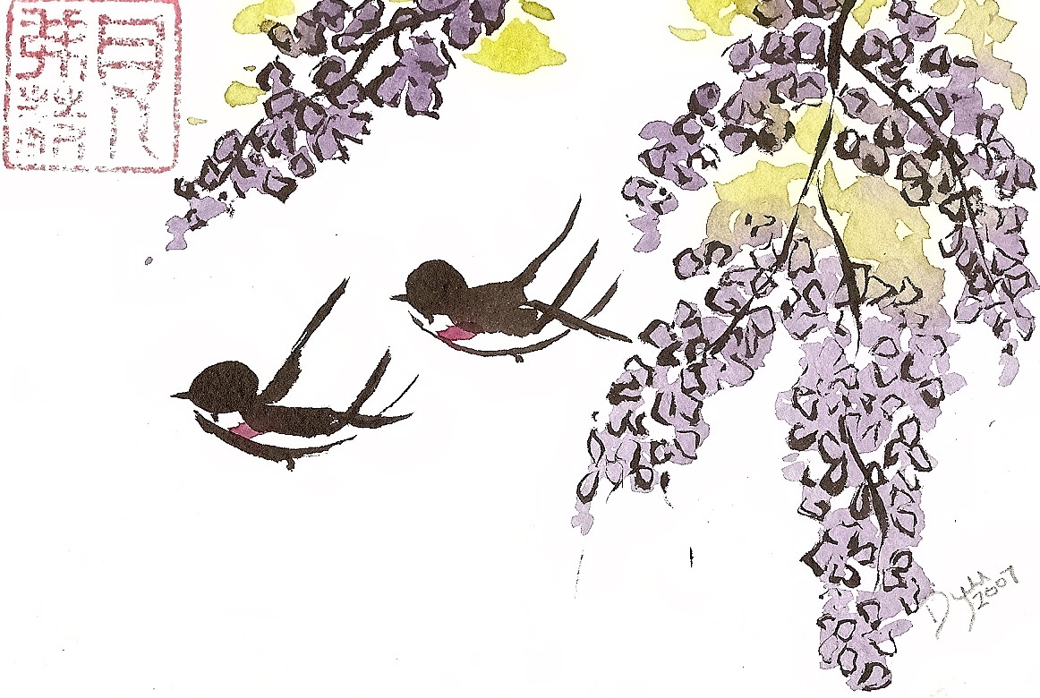 Art Prescription: After my first day back at my nursing job, I went out to water my garden and breathe in nature. I spent some time working on some pen and ink sketches…so rewarding studying something up close, and getting to knows its curves. I noticed a small flock of birds quite active over the tall pine trees. I sat down to watch them. Swallows! I sat for a while watching them swoop and dive and float chasing their evening meal. They are insectivores. It was like watching an aerial ballet! So relaxing and their calls to each other sweet, clicking I haven’t heard before. As they occasionally flapped their wings to stay afloat, their pale colored bellies would catch the evening sun… take my breath.