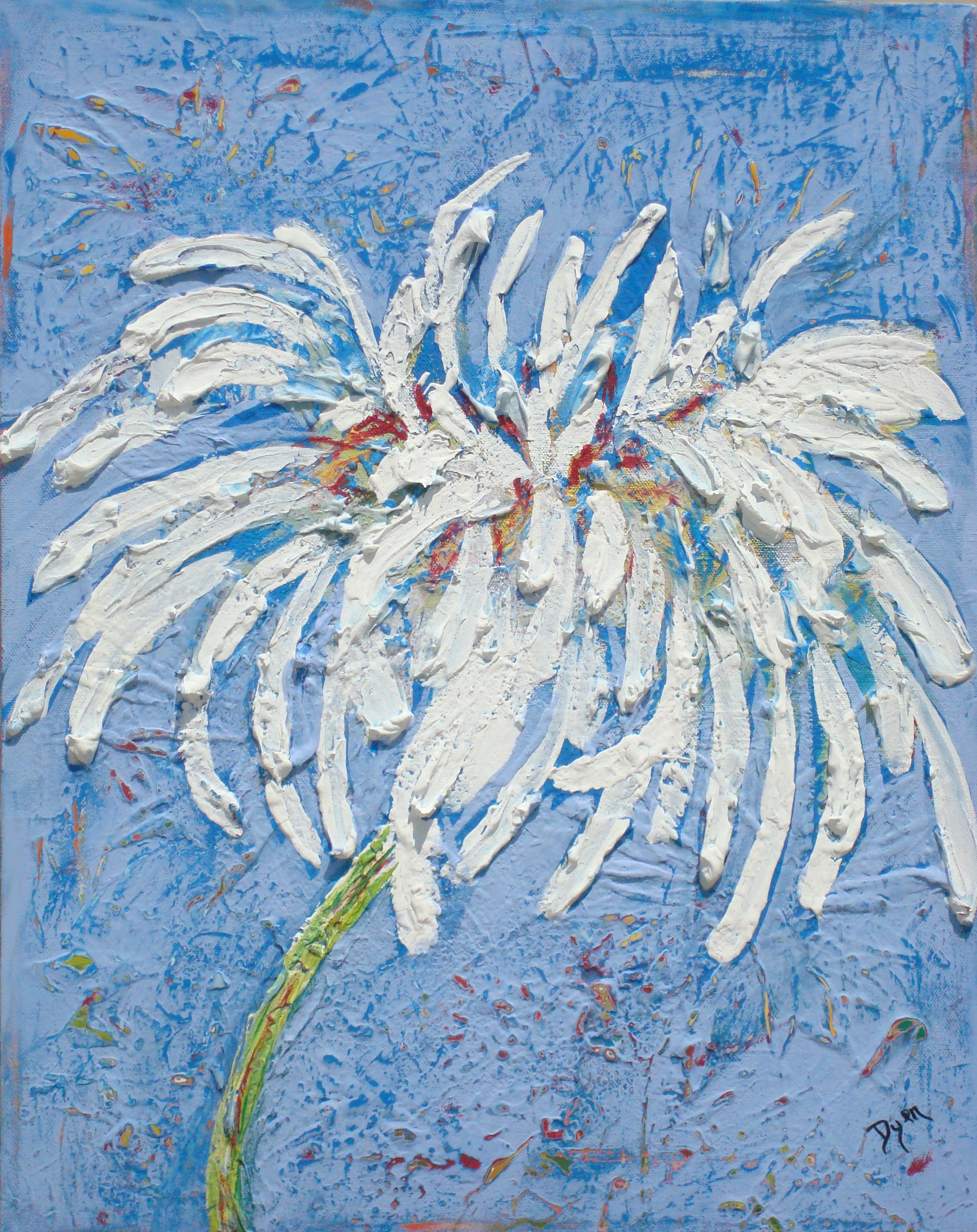 Art Prescription: I spent most of the weekend in my studio and outside in the garden, despite the heat. Finished my two newest works: Fireworks I and II. These paintings have 10 plus layers of paint and modeling paste on them. I sanded the final painting down to get back to the under-painting. This work was weeks in the making and took a lot of patience…drying time. Try a new medium…it might open an exciting window for creativity!