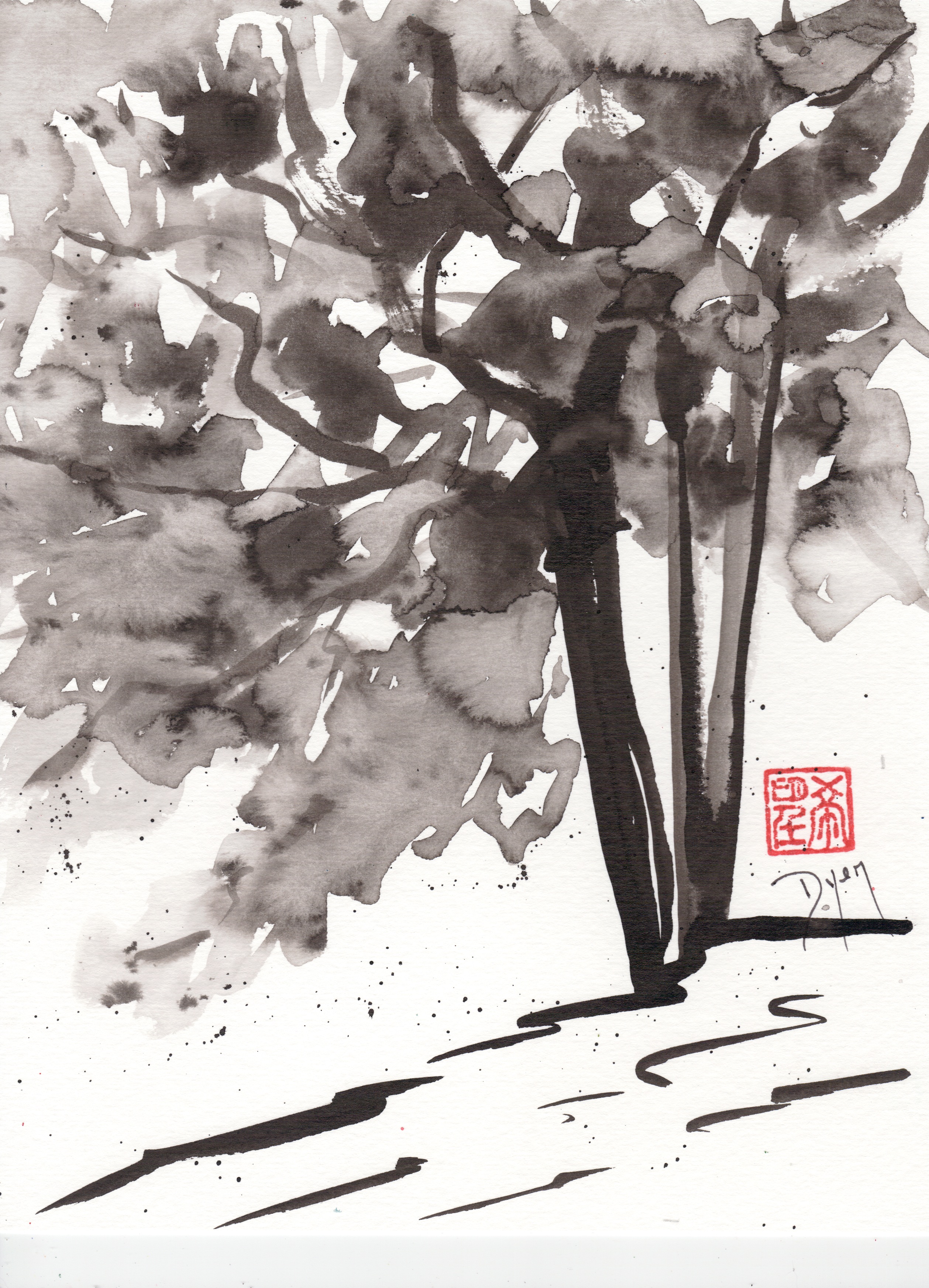 Art Prescription:  Haven’t done a tree in a while. Soothing black and white. Sumi-ink on watercolor paper 8 1/2 x 11. Available in my Etsy shop for $25.00.