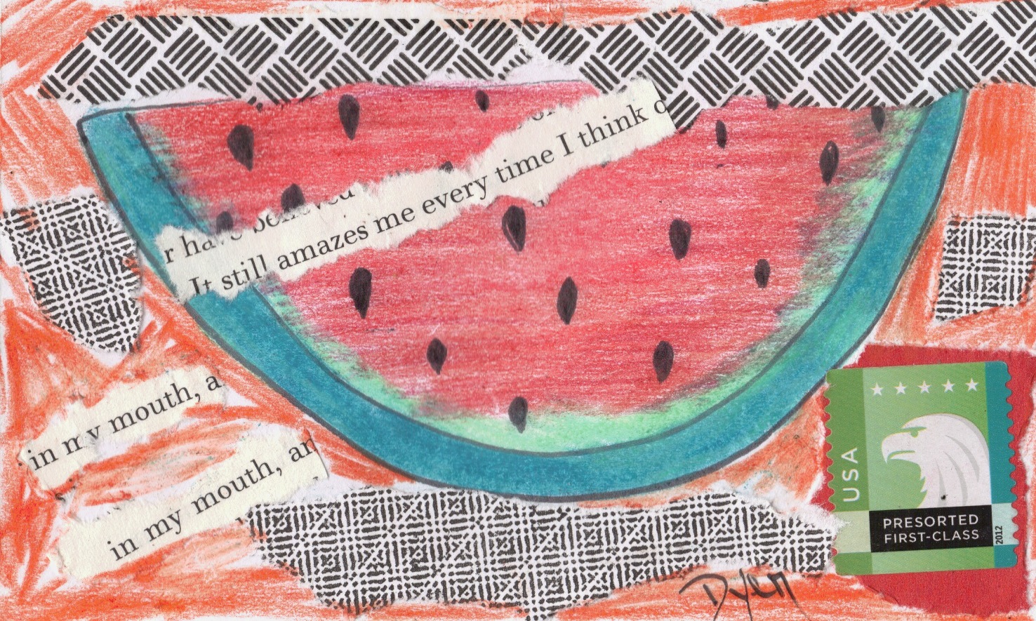 1. I hear ya! I especially like this one (the words, the index card, your drawing). There’s an urgency to it. Just like the need to bite into the watermelon even before the refrigerator’s closed. Speaking of which…..