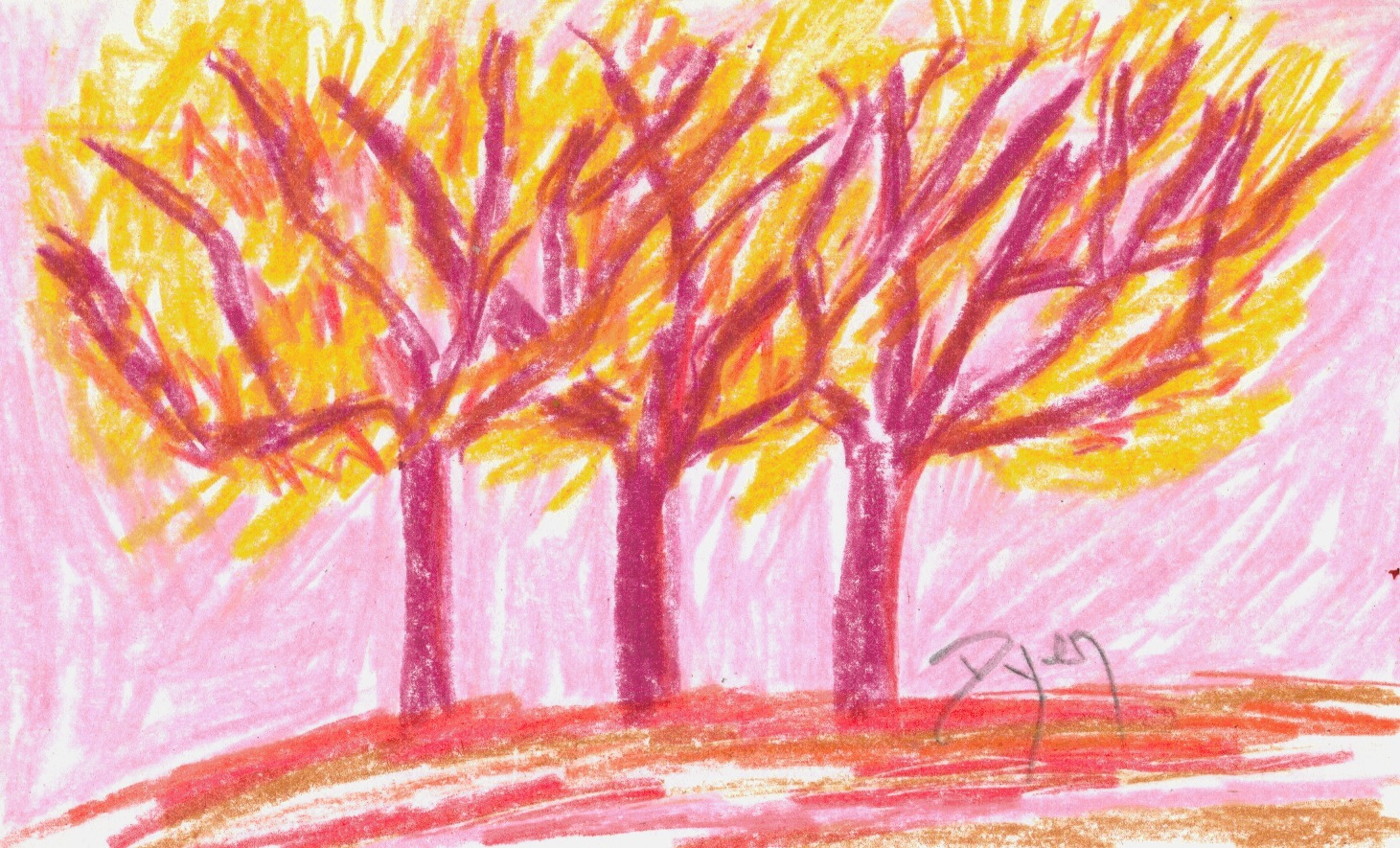 All Hallows October 31, 2015 November 1, 2015 / beverlydyer The ghosts and goblins Roam the earth for tricks and treats Clocks fall back an hour. Art Prescription: We had fewer than usual trick or treaters last night. We sat on the front porch with a fire. Index card with colored pencil: Like Loading...