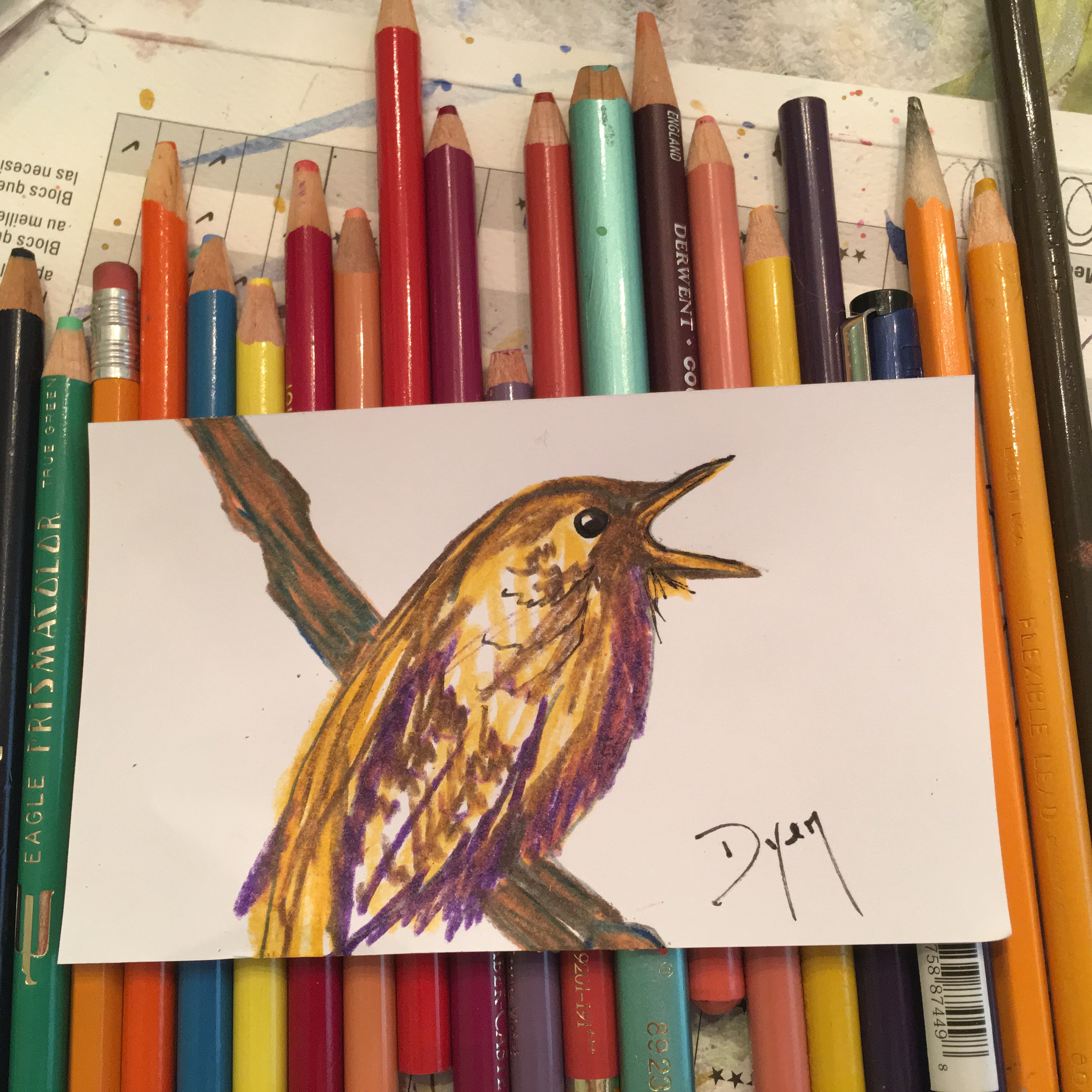 Art Prescription: when nature feels threatened it sets off a series of alarms, think of a snake coiling to strike. Carolina Wrens have a call that’s very regonizable as a stay away from here message. What can we humans learn from this? How in a crowded world do we respect each other’s space?