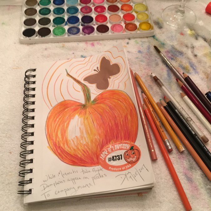 Pumpkins September 25, 2017 September 26, 2017 / beverlydyer While Monarchs take flight Pumpkins appear on porches To company mums. Art Prescription: nature journal: Share this: Click to share on Facebook (Opens in new window) Facebook Click to share on X (Opens in new window) X Like Loading...