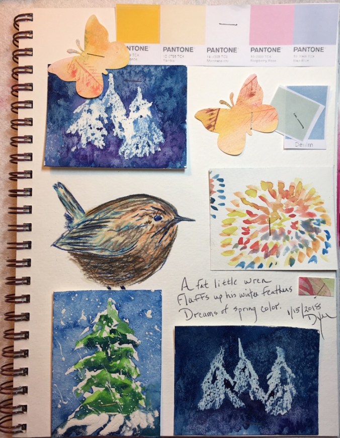 Art Prescription: Art journal fun! Staple collage, re-use of works, colored pencil bird.