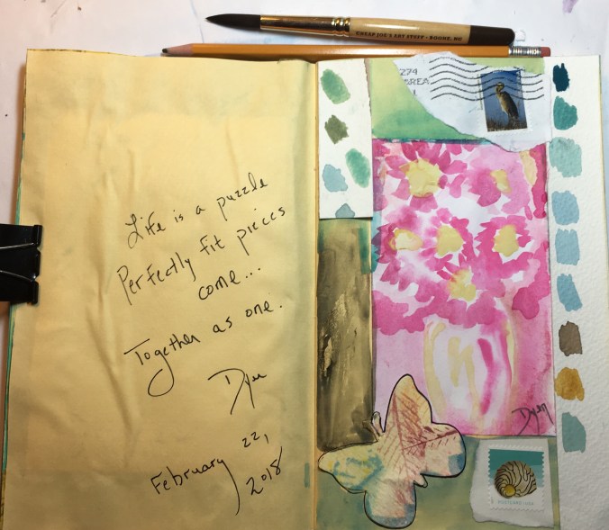 Puzzle February 22, 2018 February 22, 2018February 23, 2018 / beverlydyer Life is a puzzle Perfectly fit pieces come Together as one. Art Prescription: mixed-media Page. Share this: Click to share on Facebook (Opens in new window) Facebook Click to share on X (Opens in new window) X Like Loading...