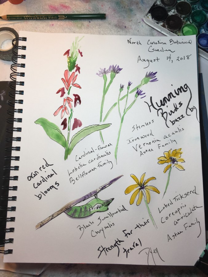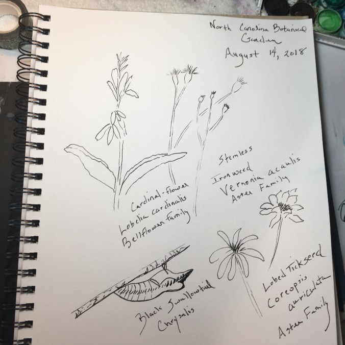 Art Prescription: I went to the NC Botanical Garden to sketch this afternoon. The garden is lush with growth.
