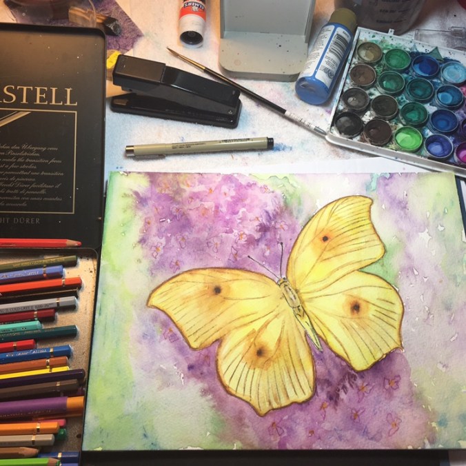 Watercolor and watercolor pencil… is she done? May need a few details with fresh eyes.