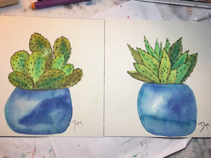 I painted the pots with watercolor. And then added some pen and ink detail.