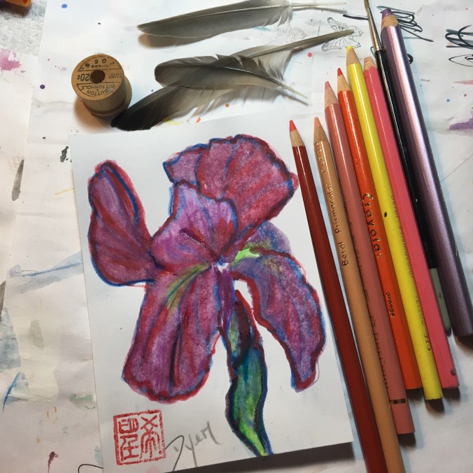 Watercolor pencils on index card:
