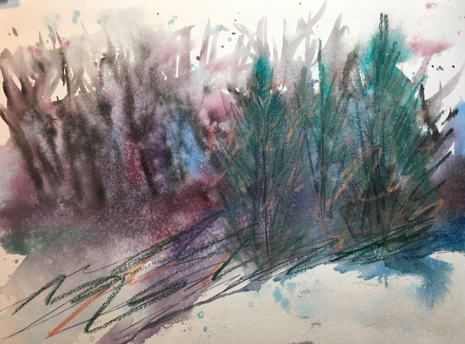 I layered in more watercolor and then accented with acrylic. Now it fits my mood for the day.