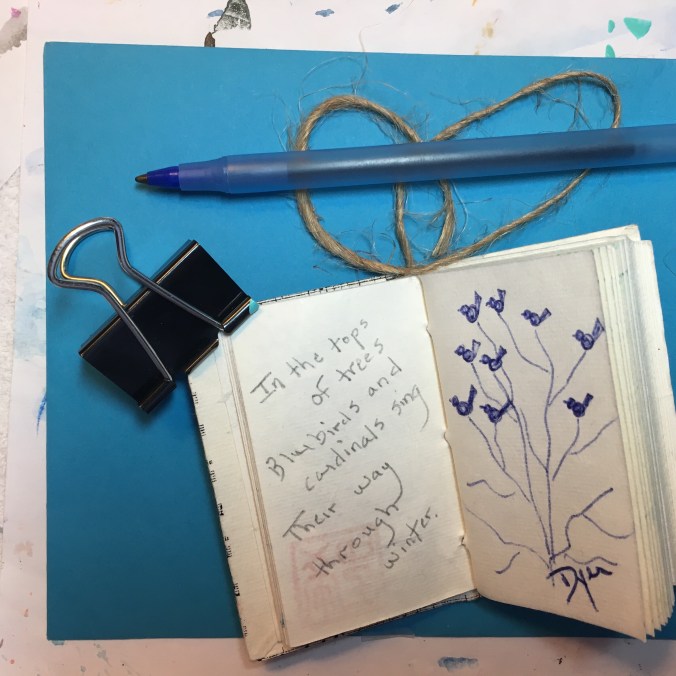 Art Prescription: tiny journal with graphite and blue-ballpoint pen,