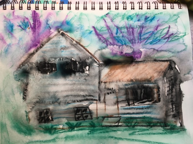 Wax crayons with water in my art journal: