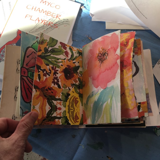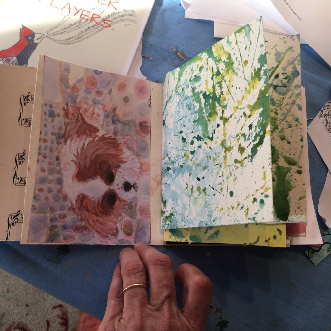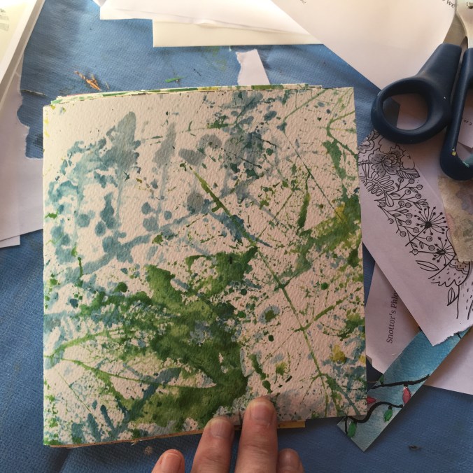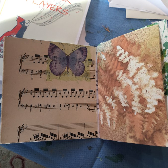 Here are the pages so far…I’m using my hand-printed foliage pieces!