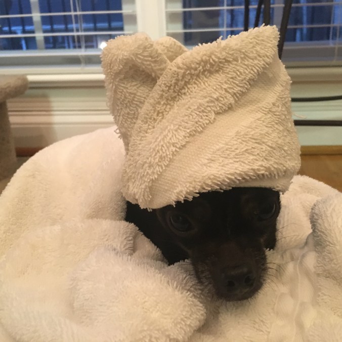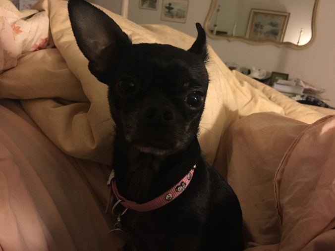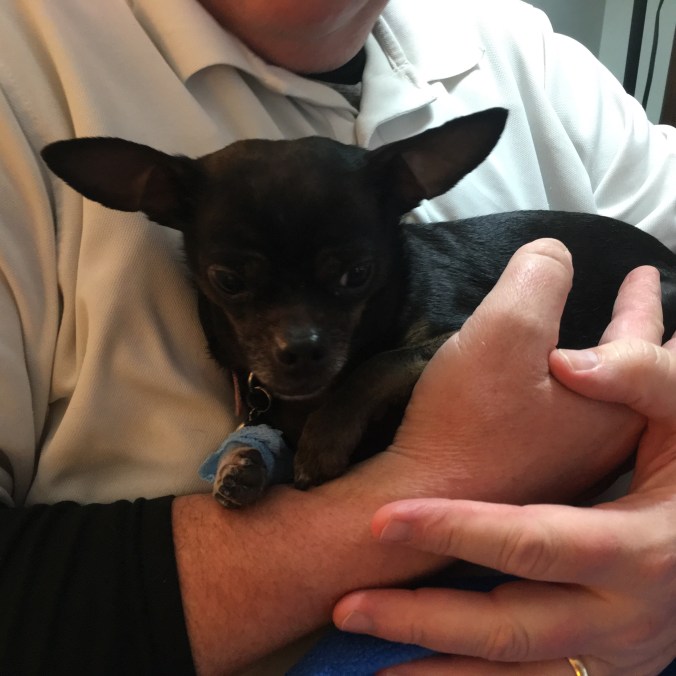Last Wednesday she had her dental cleaning, and since her teeth had been neglected she had 12 pulled. Chihuahuas have 42 teeth so not as bad as it sounds.