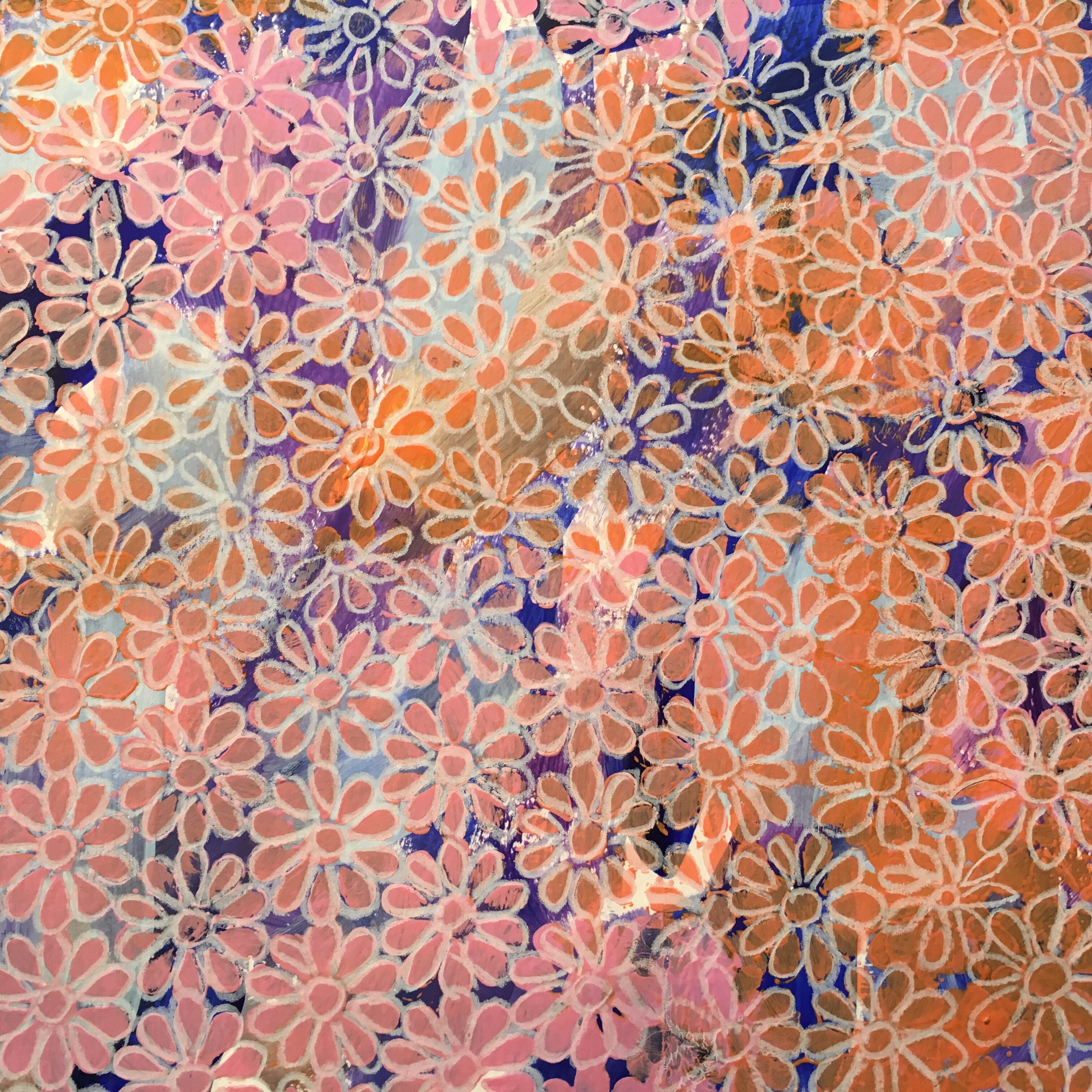 This is a pattern made from acrylic paint, a stencil, and colored pencil. Now I’ve made mini cards to go in my Stitch Kits.