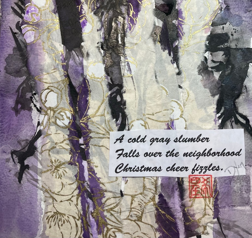 Winter Time December 28, 2025 / beverlydyer A cold gray slumber Falls over the neighborhood Christmas cheer fizzles. Collage with ink Share this: Click to share on Facebook (Opens in new window) Facebook Click to share on X (Opens in new window) X Like Loading...
