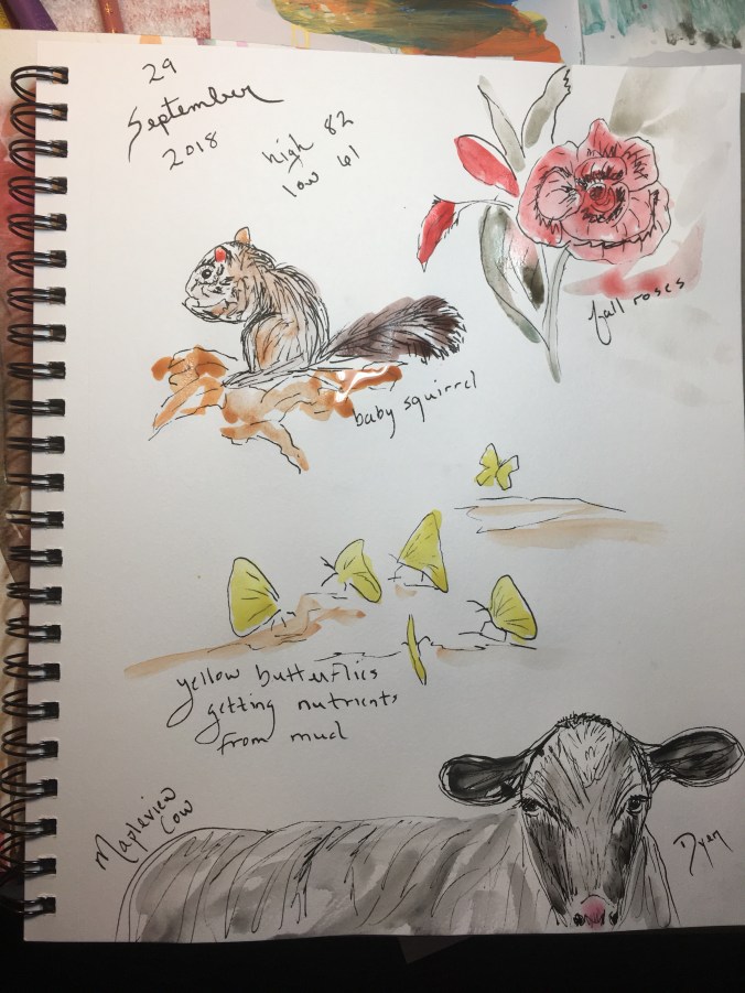 Art Prescription: As happy as I am for cooler days, I’ll miss my active garden. The blue birds come to the feeder, so maybe they will stay around for next spring.