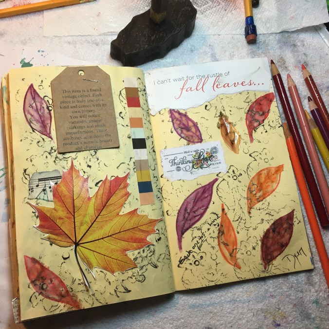 art journal collage, stamping, watercolor pencil: