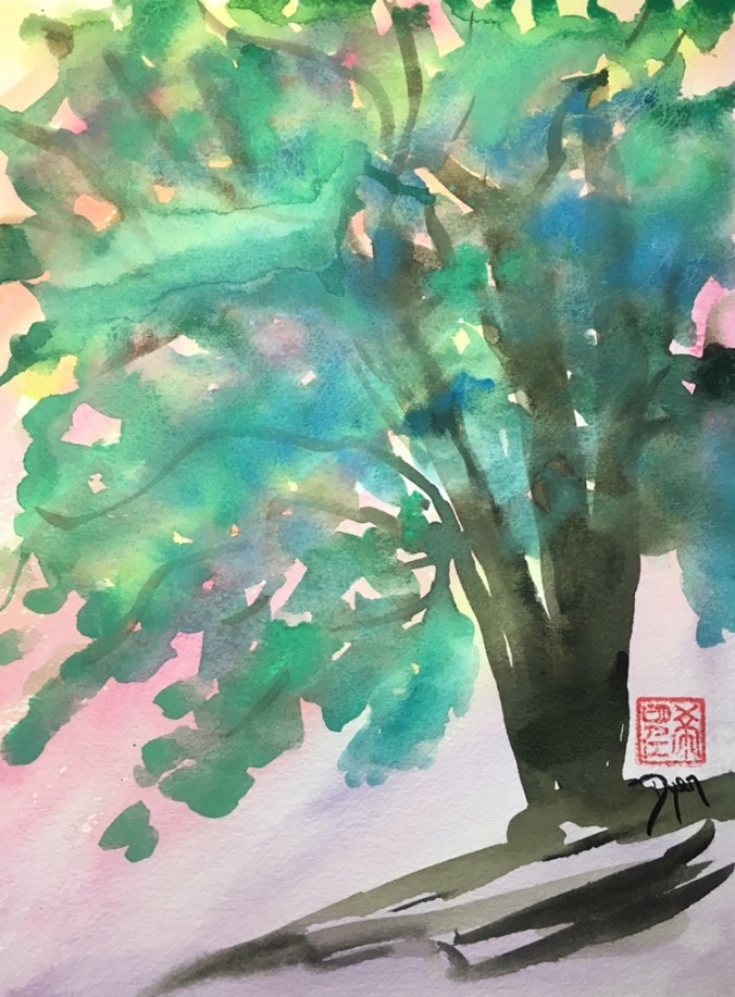 Watercolor sketch (may add ink) and my chop that says “hope”