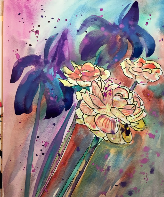 Pen and ink sketch en plein air and watercolor: