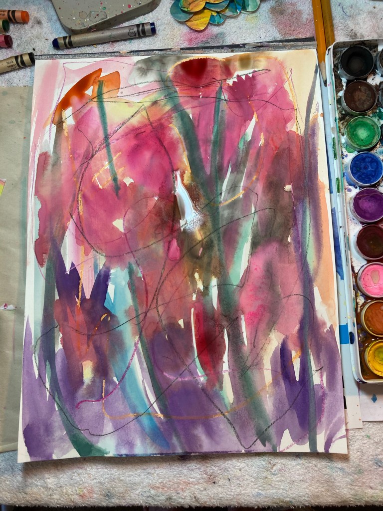 Watercolor with liquid acrylic accents.