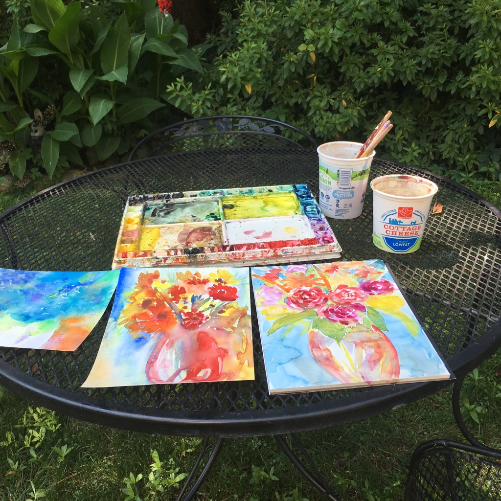 This morning I did a grandson and grandmother (social distancing) art class in my backyard. What fun!
