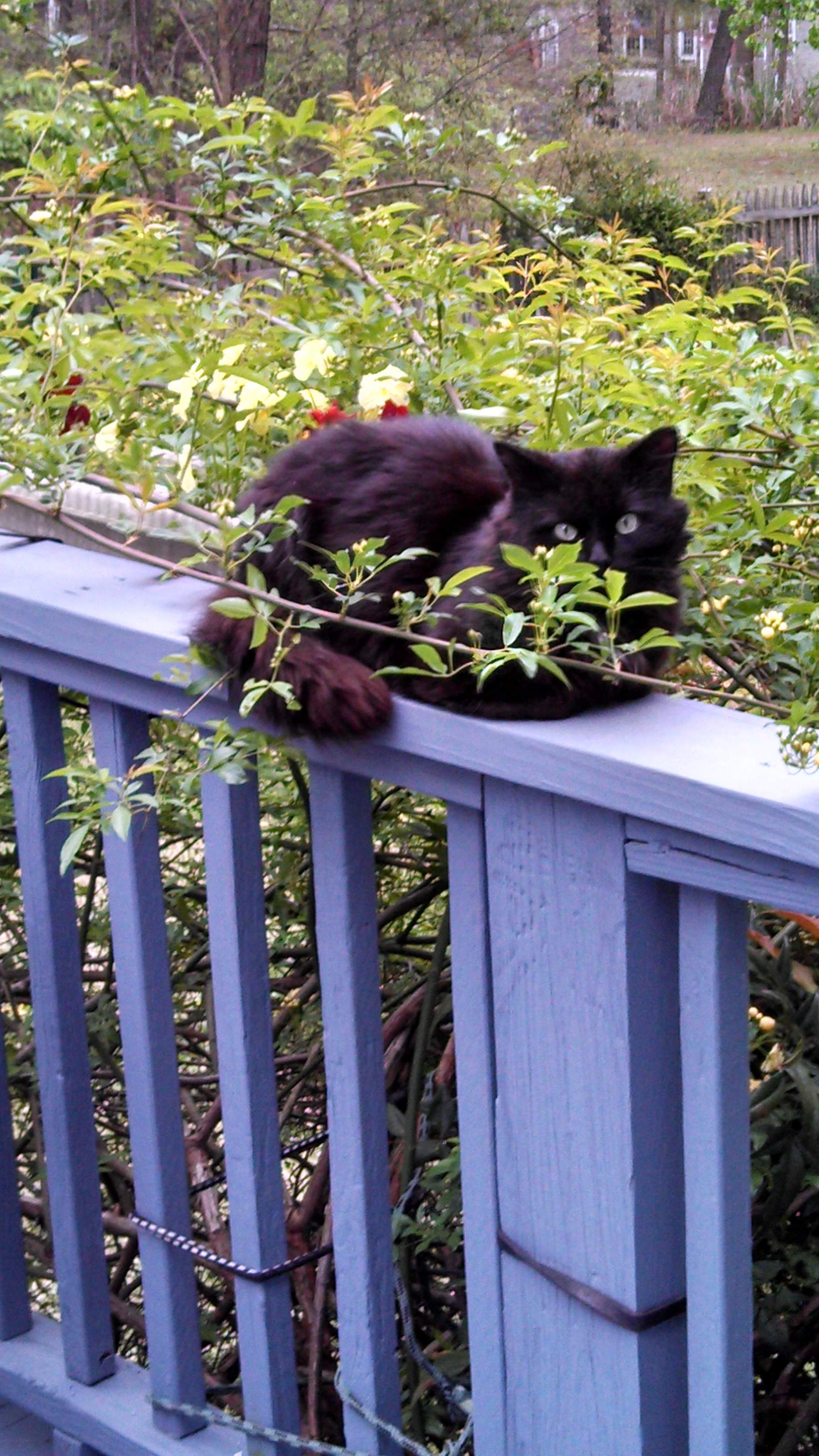 Art Prescription: Blackie the stray cat is still around. He seems content to eat at my neighbors and rest under porches in the shade. He is still very timid. We are trying to see what we need to do to help him. He may actually be living the life of grandeur, free to roam, basking in the sun or shade, scratching real trees, chasing bugs…