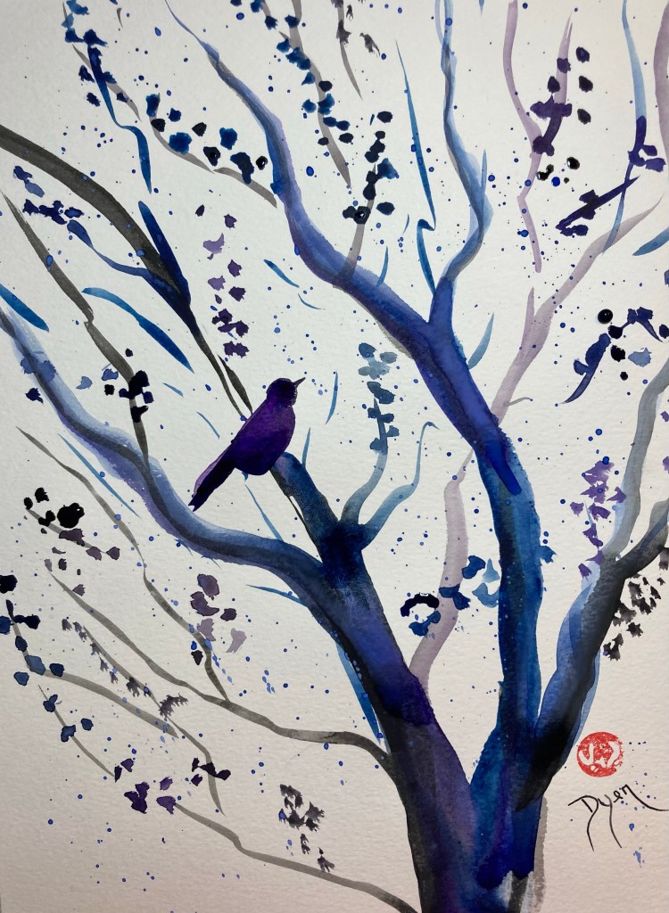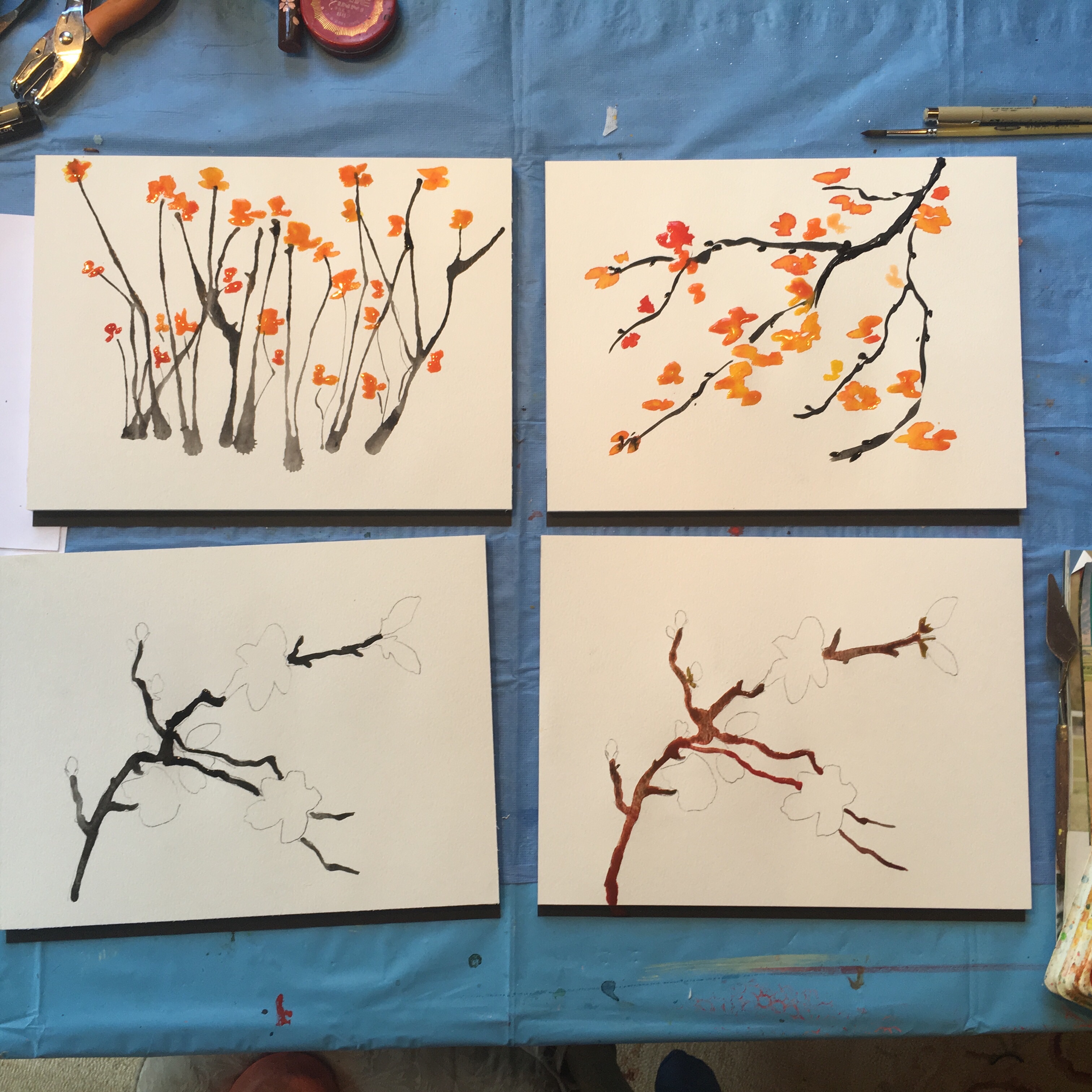 Spent my afternoon painting in my studio with the doors and windows open. A bit warm, but like feeling I’m part of the backyard.