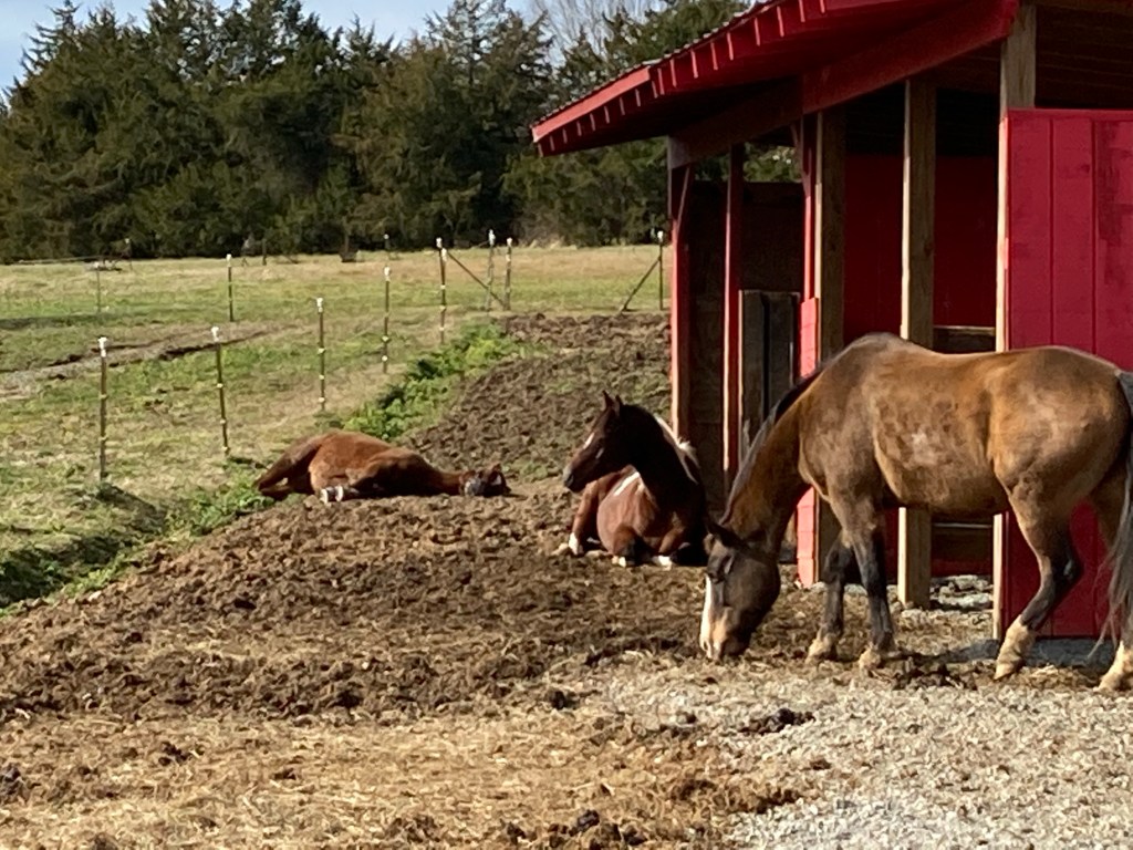 Bodie arrived and even with all the activity, he got off the trailer cool, calm, and collected. The fact that horses live in the moment is demonstrated over and over again.