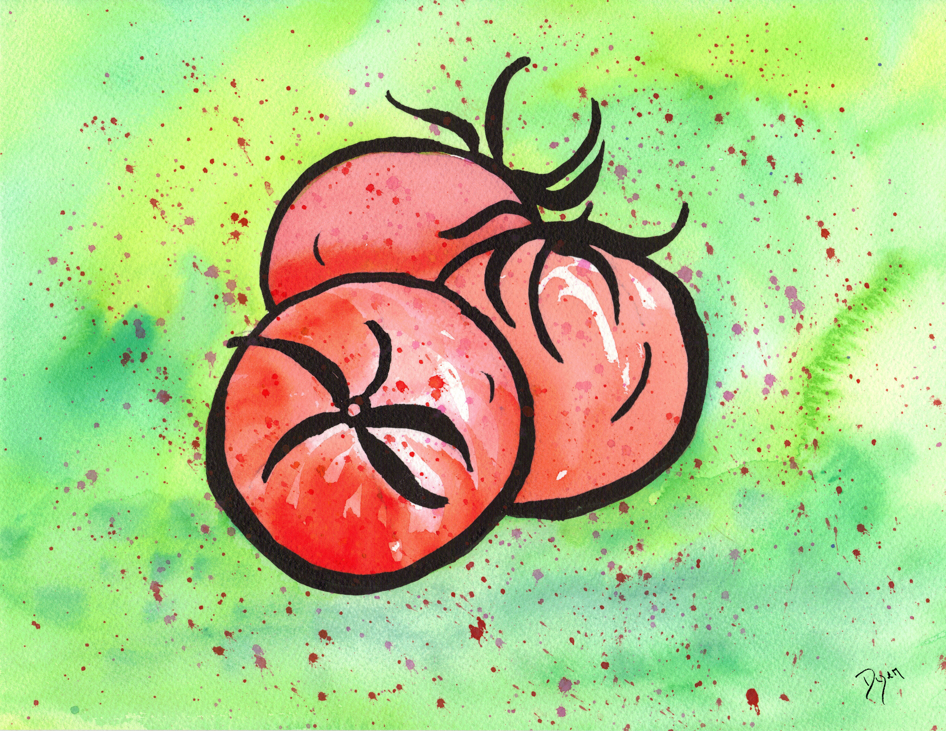 Art Prescription: Summer means juicy, sun-ripened tomatoes. I know there is a lot of argument out there with how to appropriately build a tomato sandwich. Some are strictly BLT advocates…and yes this is a good option. Others say mayonnaise is the essential makings of a tomato sandwich. Me. I’m a purist. Just a freshly sliced tomato on bread and I can taste the sun.