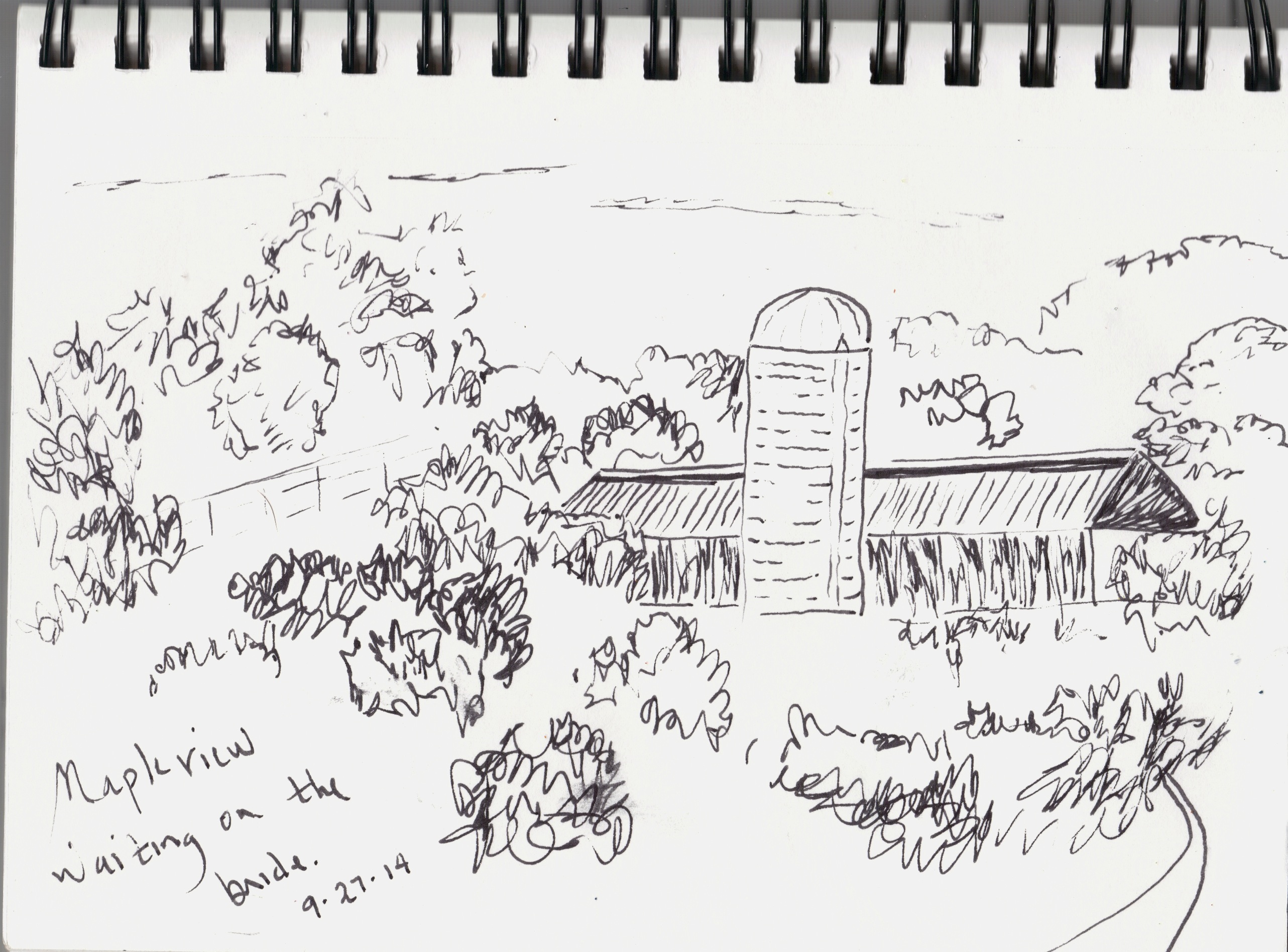 Art Prescription: Took my blanket, binoculars, and sketchbook out to the country today. Plopped myself on a hill over-looking a dairy farm. Meanwhile people wandered into the store for fresh and local ice-cream cones.