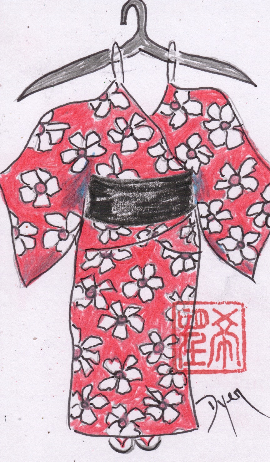 Kimono July 20, 2015 July 20, 2015July 20, 2015 / beverlydyer / Leave a comment Japanese garment Kimono means “thing to wear” Sash tied at the back. Art Prescription: Fun to learn…colored pencil and pen and ink.