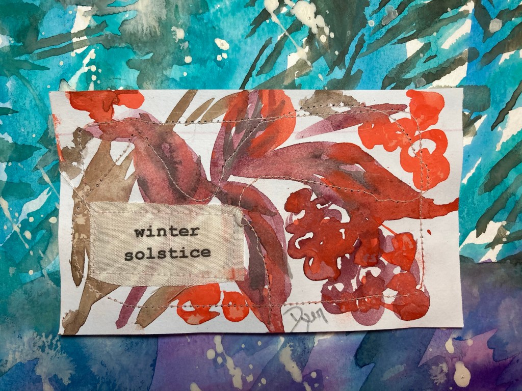 Art Prescription: index card with watercolor, fabric, and sewing.