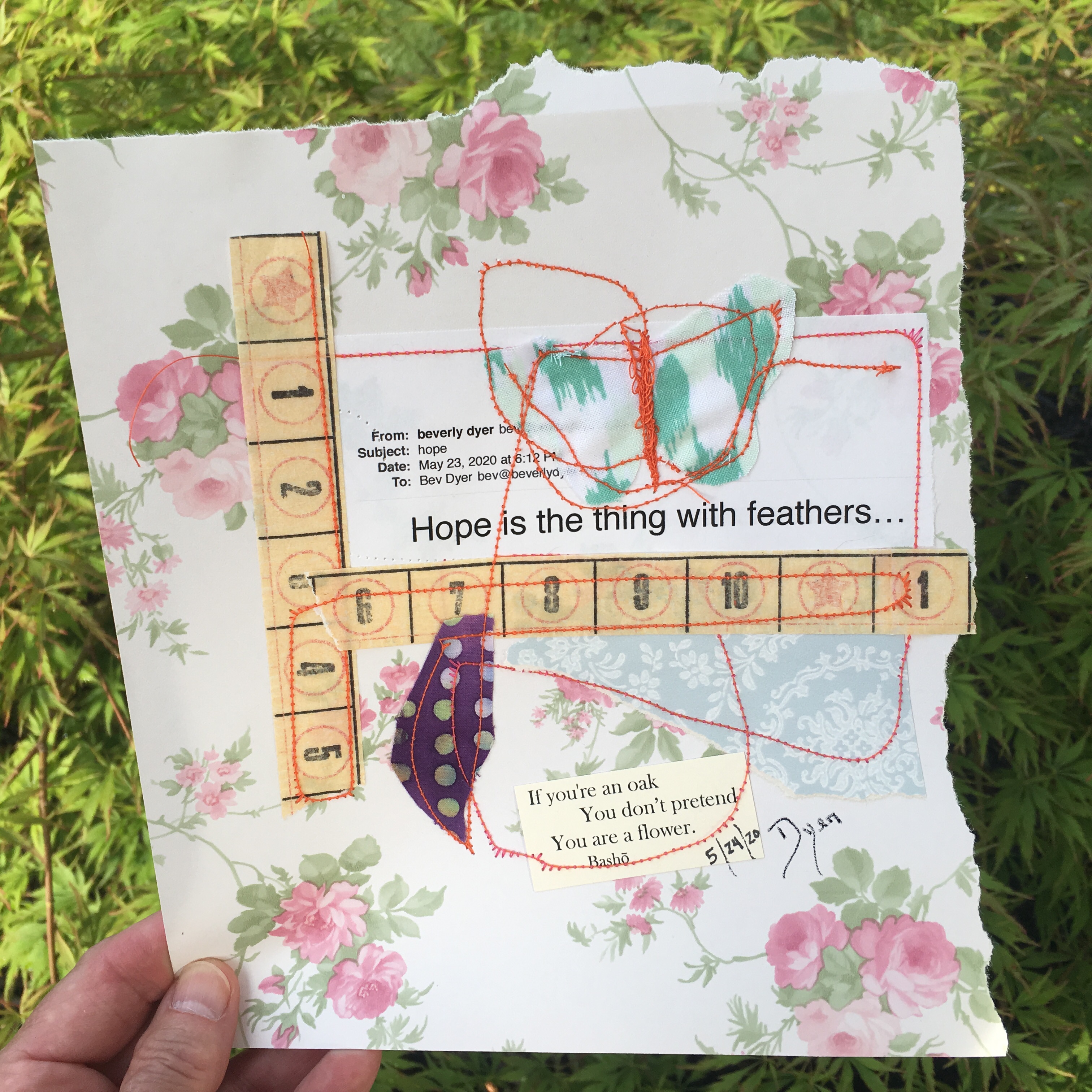 Using my collage paper with the 1903 ledger and flowers, I then sewed my index card sketches onto the paper. Fun!!!