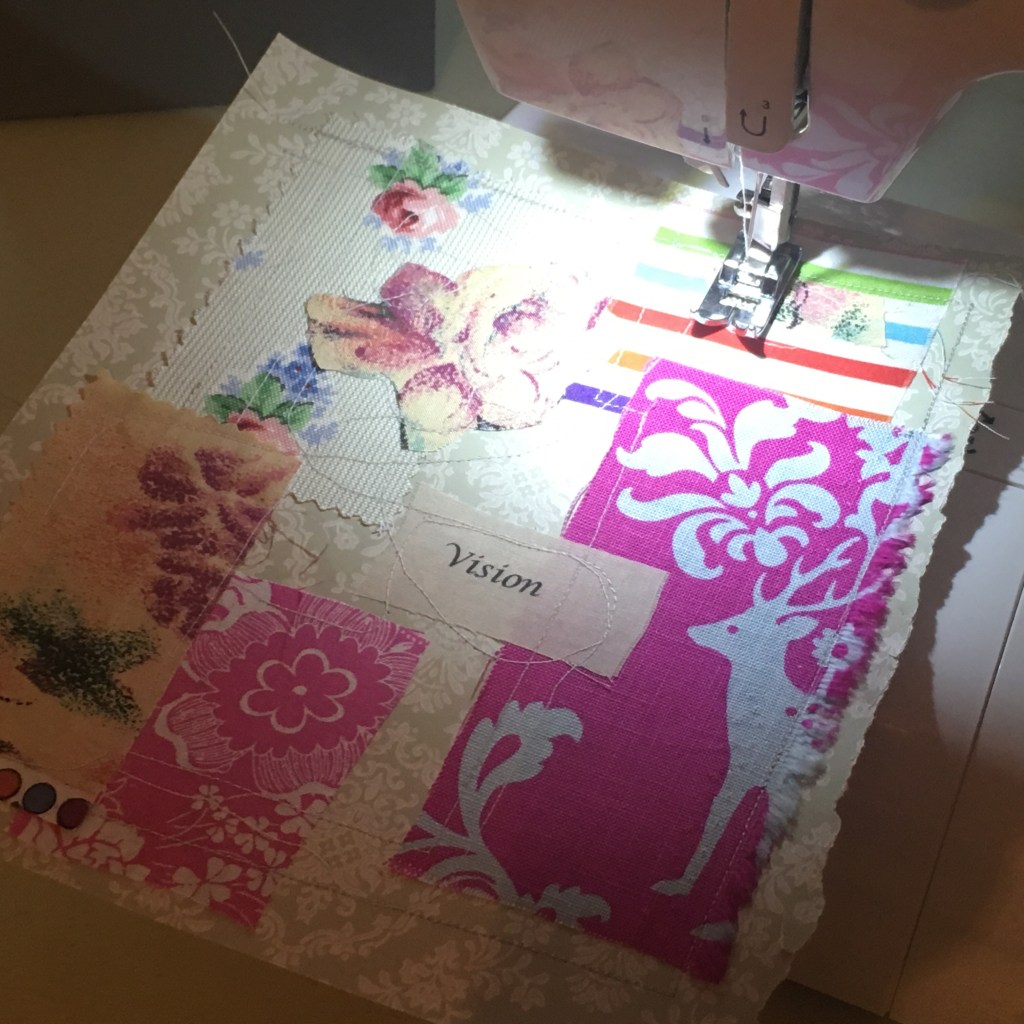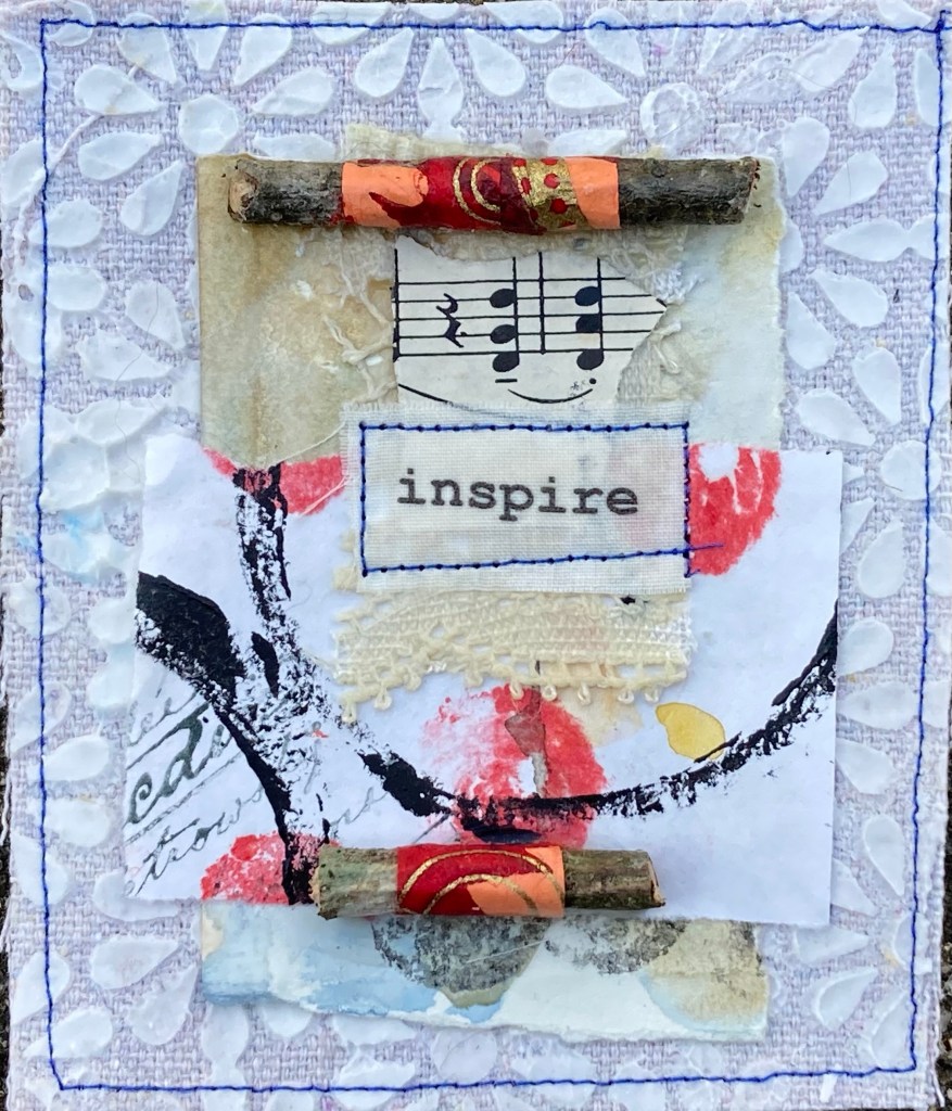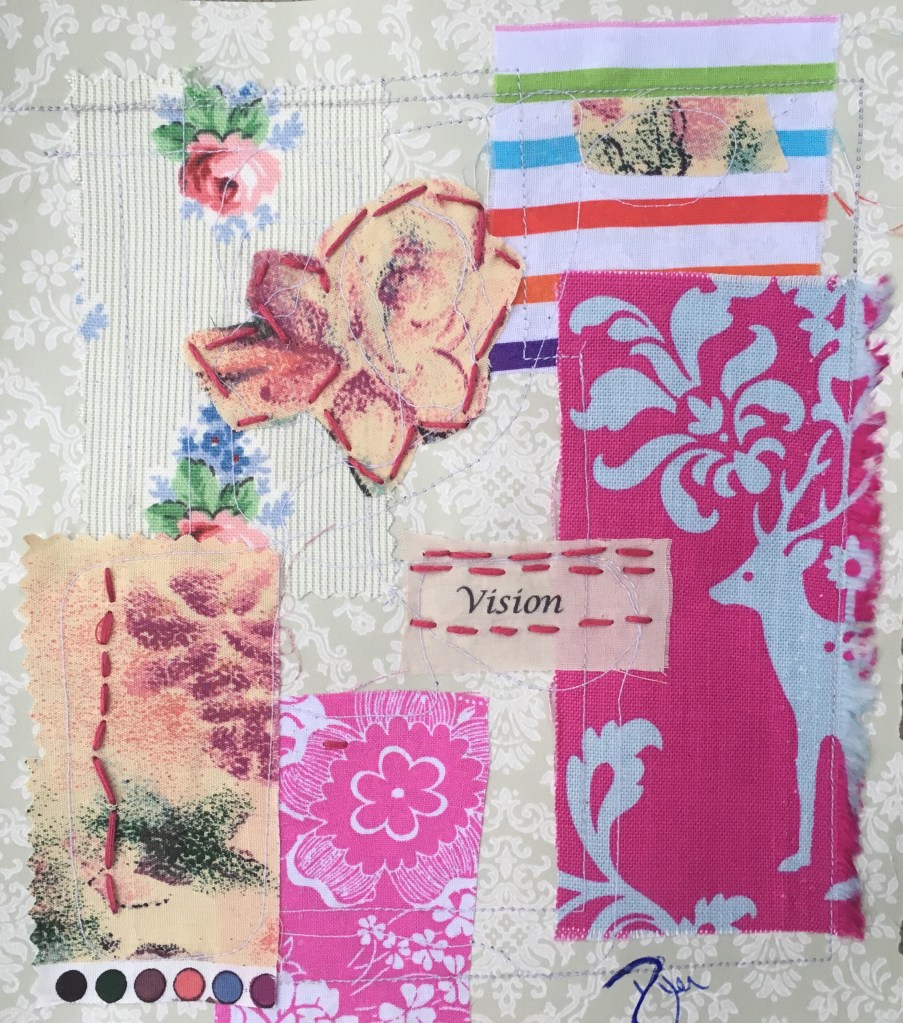 Art Prescription: index card with watercolor, fabric, and sewing.
