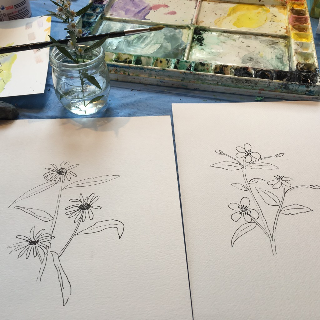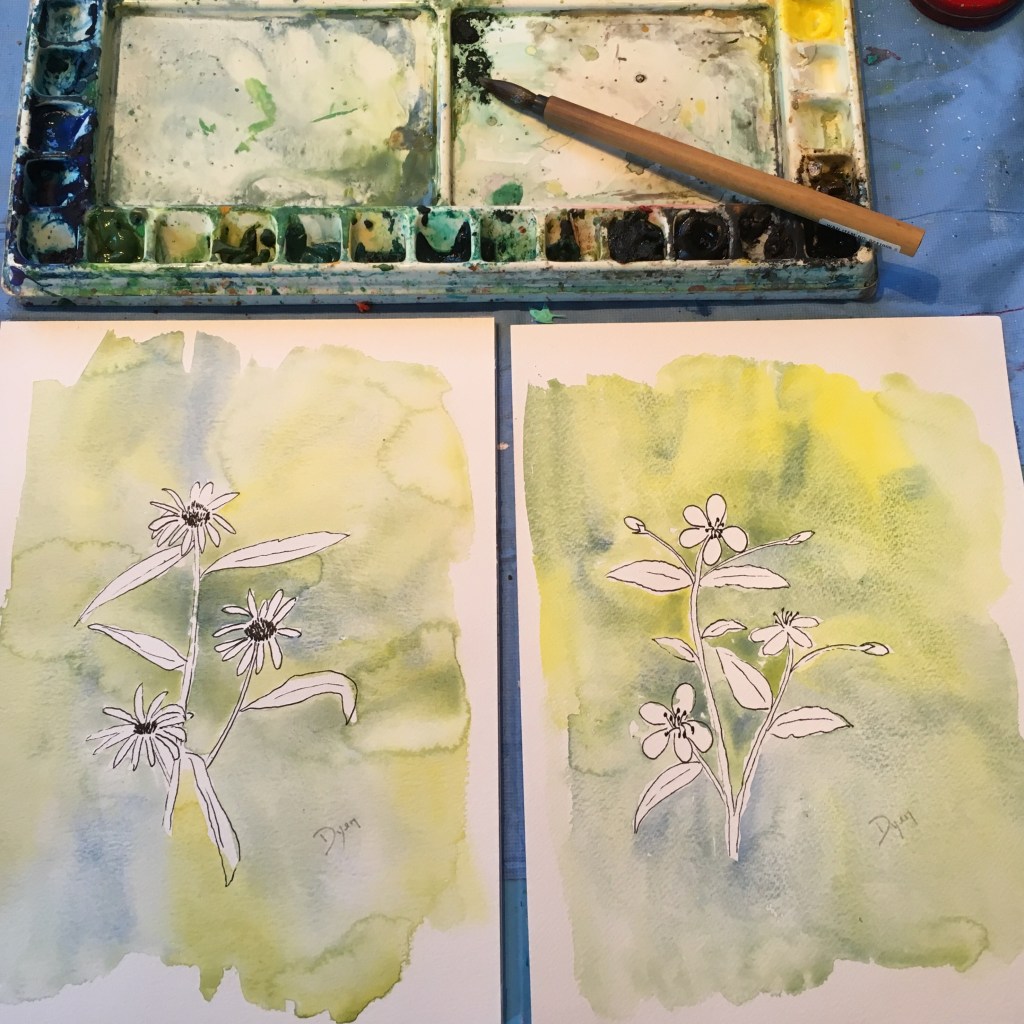 I started with a couple of pen and ink drawings from picked wildflowers.