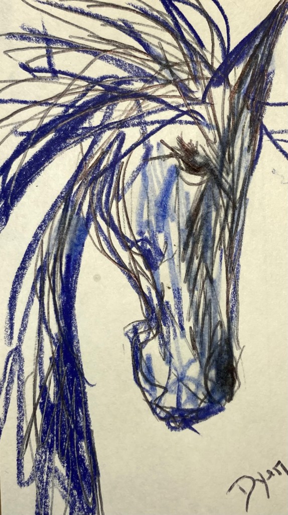 I did a simple pen and ink sketch on blue card stock…. just the basics, soothing.