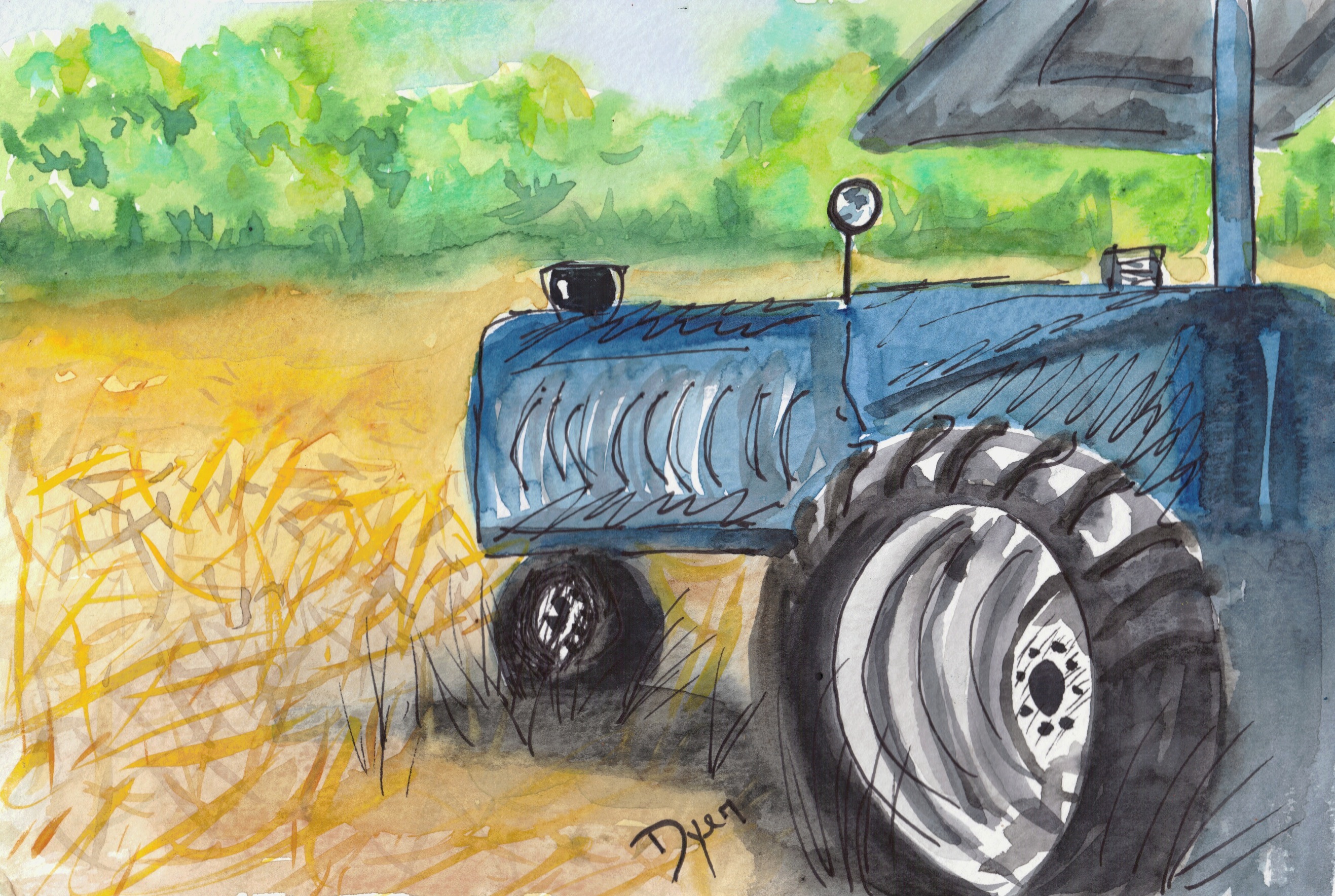 Art Prescription: Sunday hike at Merritt’s Pasture. The field was freshly mowed, except they left islands of milk-weed for the monarch butterflies. Saw cardinals, titmice, chickadees, blue-birds, and a juvenile hawk. Watercolor sketch with pen and ink.