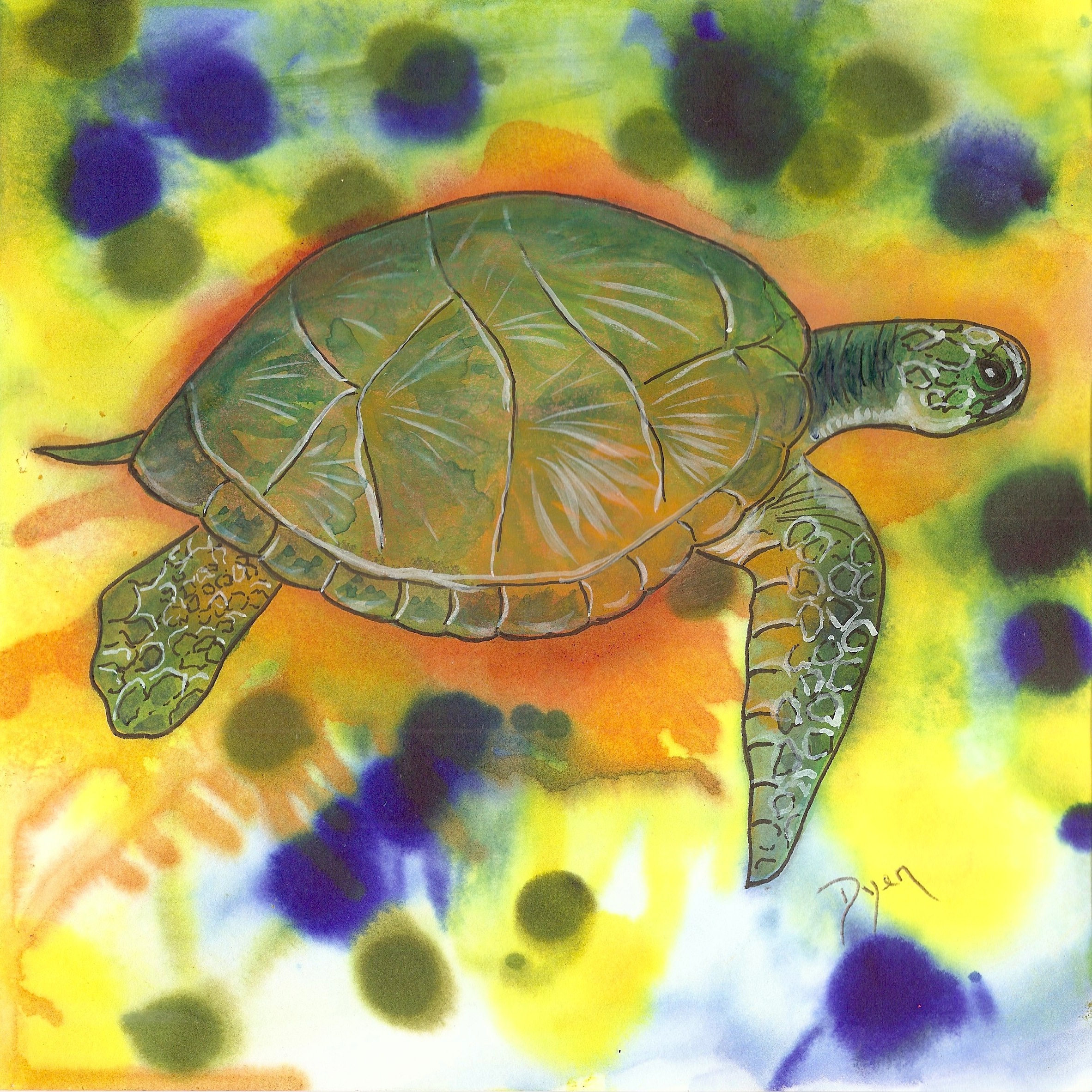 This is my second sea turtle. The first one I did with alcohol inks which was fun and bright and bold. This one is softer, done with watercolor. 8 1/2 x 11 watercolor