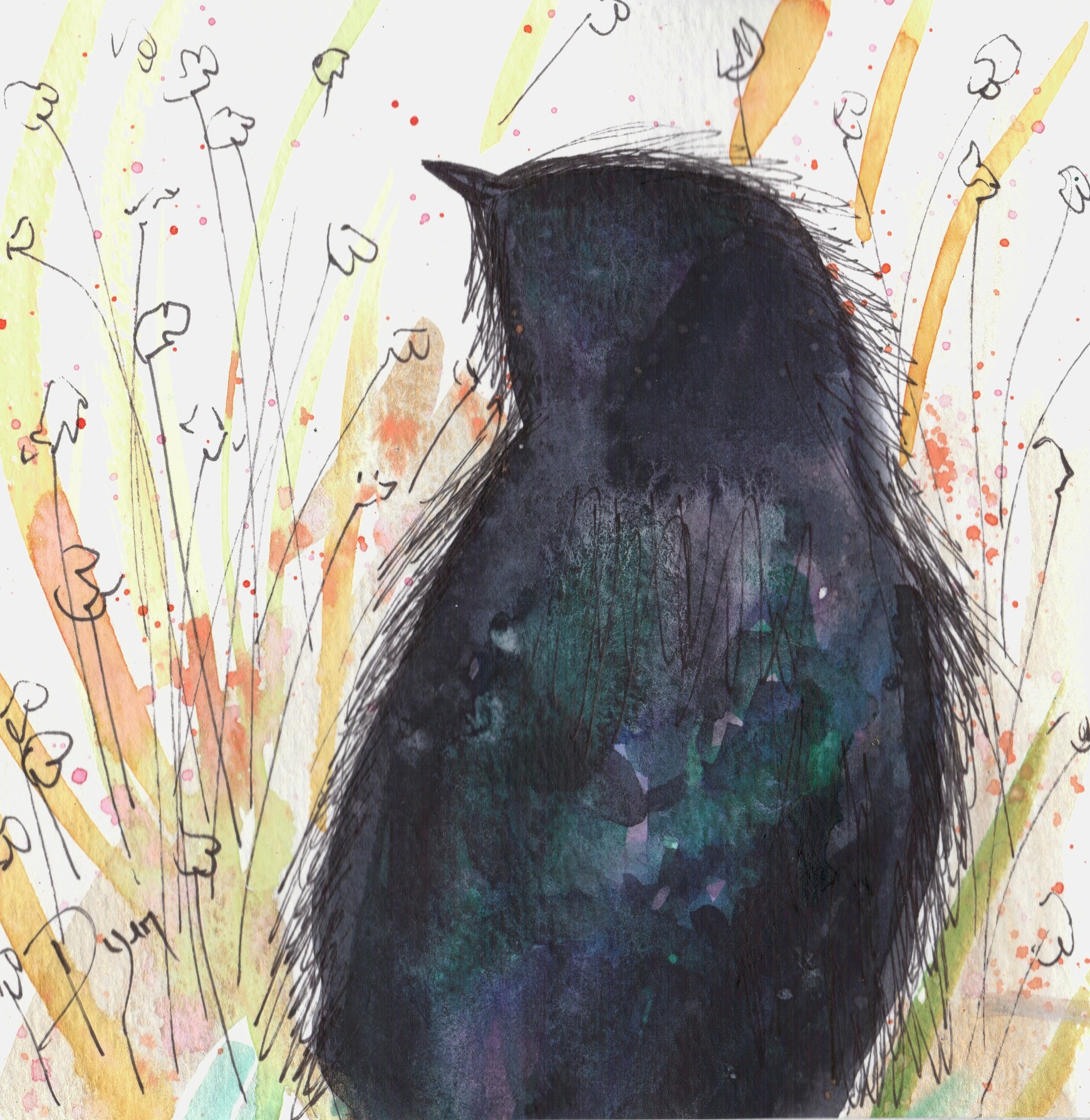 Art Prescription: Sometimes the good stuff has to wait. Has to wait to pay the mortgage, has to wait to pay college tuition, has to wait to pay the grocery bill…has to wait. I have a lovely Evening Grosbeak waiting for me to paint her. I will get there…for now a purple sketch.