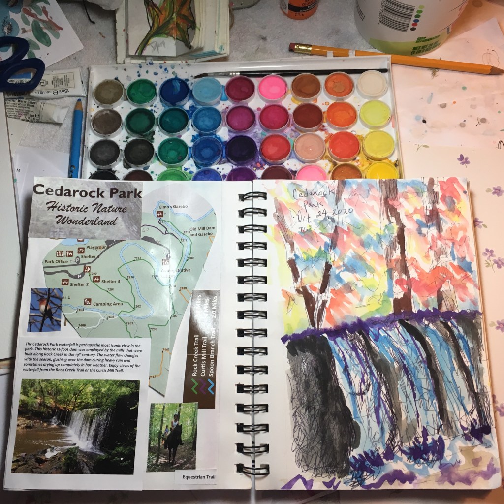 Art Journal with pen and ink and colored pencil: