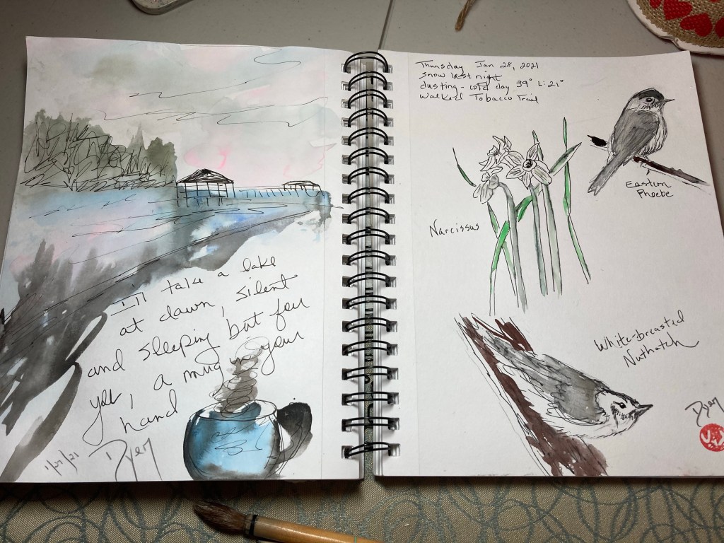 Hiked Tobacco Trail. Bird watching and sketching.
