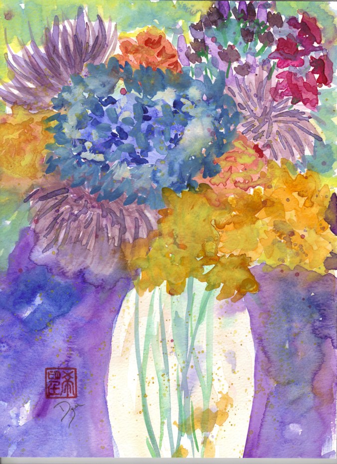 Art Prescription: An insect to love, Praying Mantis. They start off about the size of a mosquito, and grow to be several inches long. I once had the same Mantis live on my basil for about two months! At the time I wanted to write a book called “Manni in the Herb Garden,” a children’s illustrated guide to herbs. I found this bug fascinating to watch, and it’s true the way they lick their front limbs and clean their face it very cat-like. They turn their head in a way that gives them immediate personality. When I watered my basil this particular fellow would come up to the top of the plant to get a drink. There are so many things to find and observe in nature! And if you have time to sketch even better!
