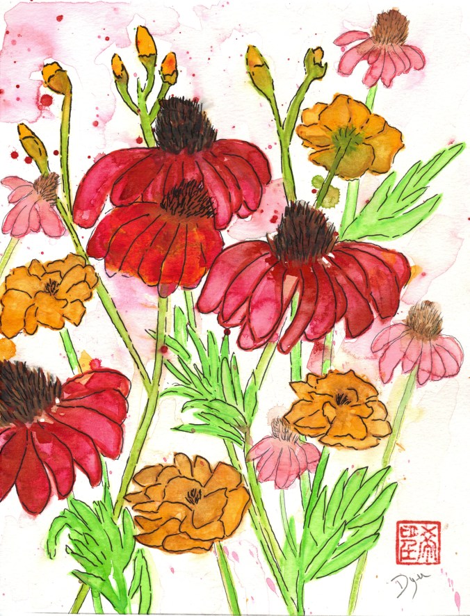 Art Prescription:  It’s subtle, the light changing a minute a day. Days are getting shorter. Seems the cricket calls are different, hanging out in the late summer grasses. I welcome a change…change is good. I’m really enjoying my online class on watercolor hand-lettering with Val Webb.